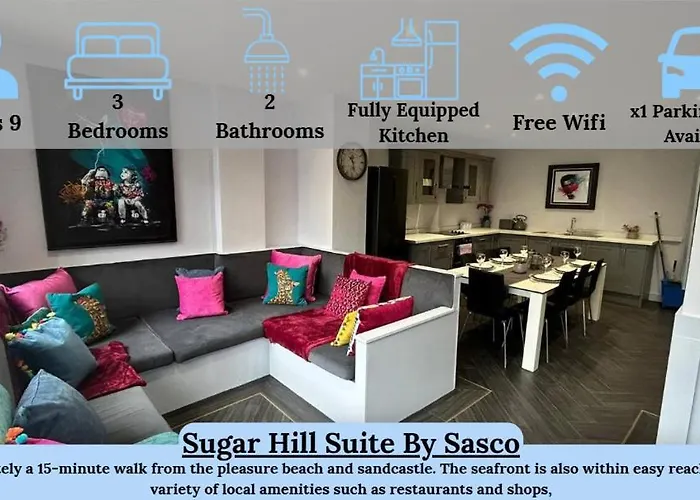 This property has a mini-kitchen including a microwave, a fridge, and glassware. Ensuring that guests have a comfortable stay, the apartment includes tea and coffee making equipment as self-catering amenities. Serving Balti specialities, Indian Palace is nearly a 5-minute walk away. This 2-bedroom apartment is 5 km from Blackpool International airport.
